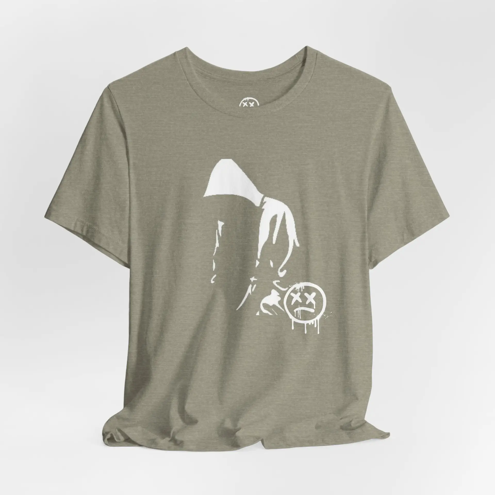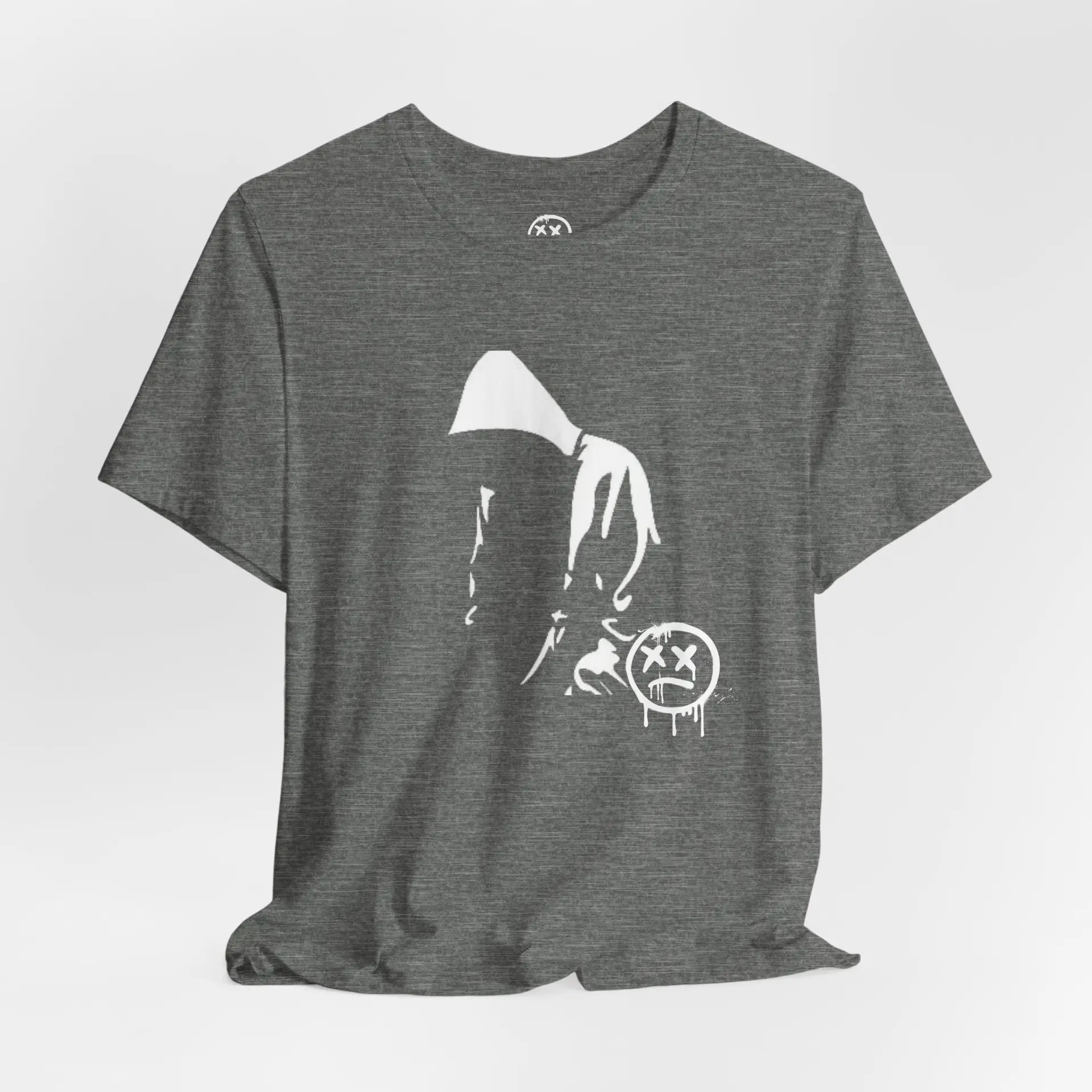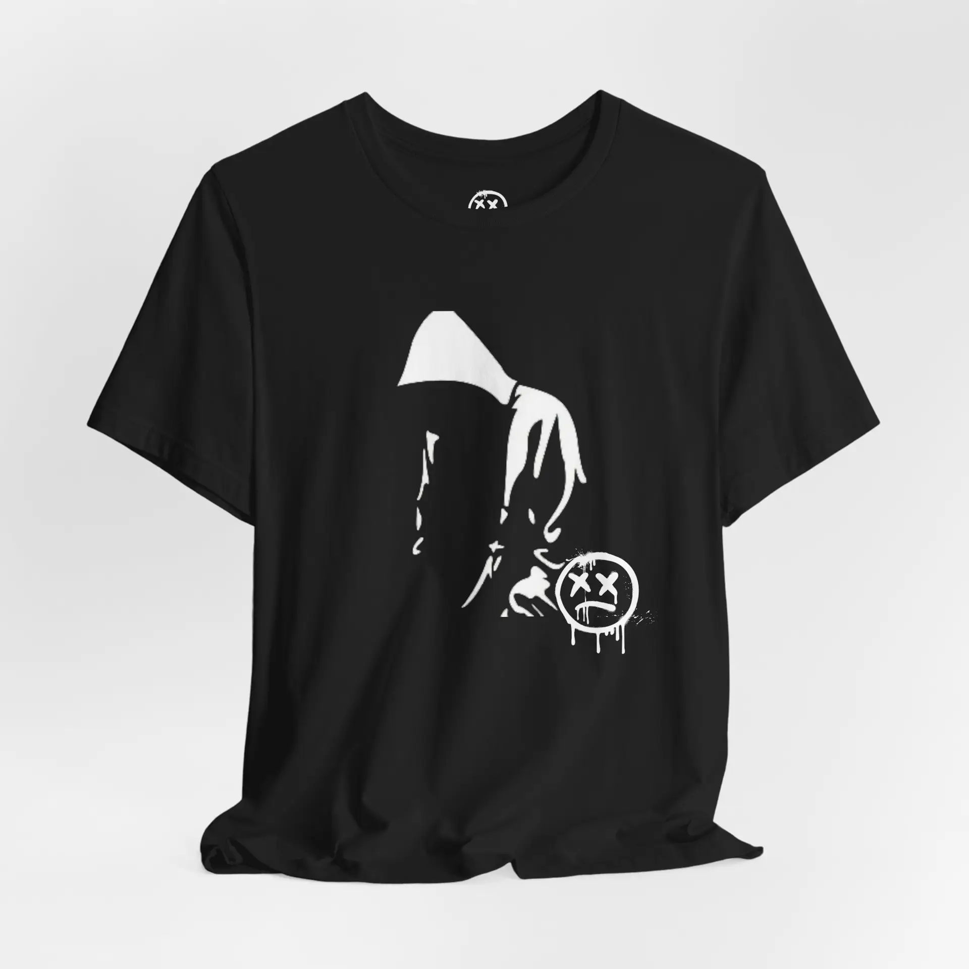 Why I made it: Classic. A hooded figure, face hidden, Happy Face logo as the accent. That’s it. Sometimes the design just makes sense.