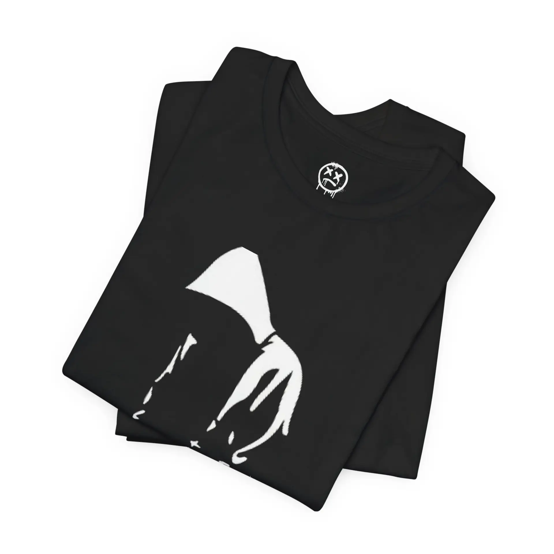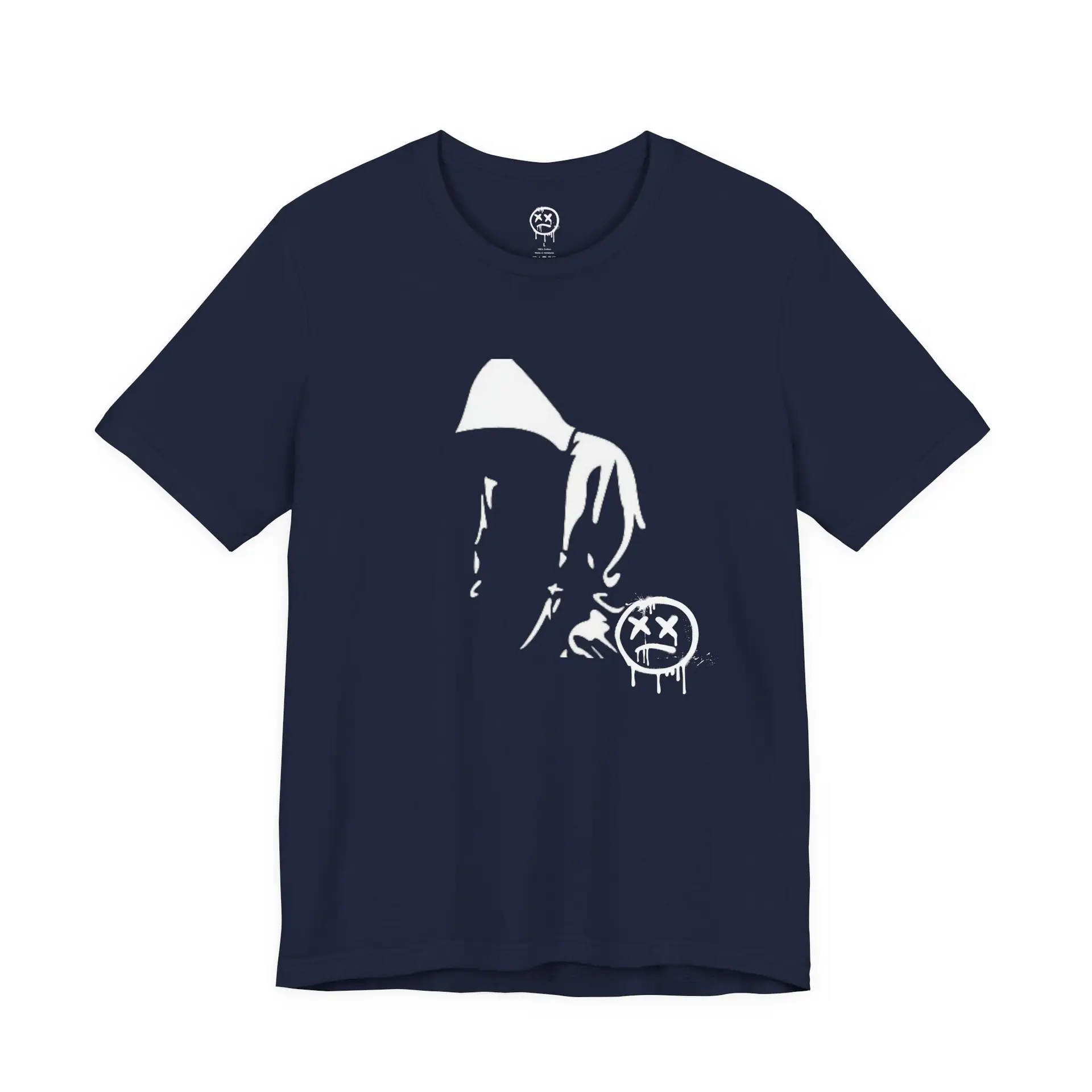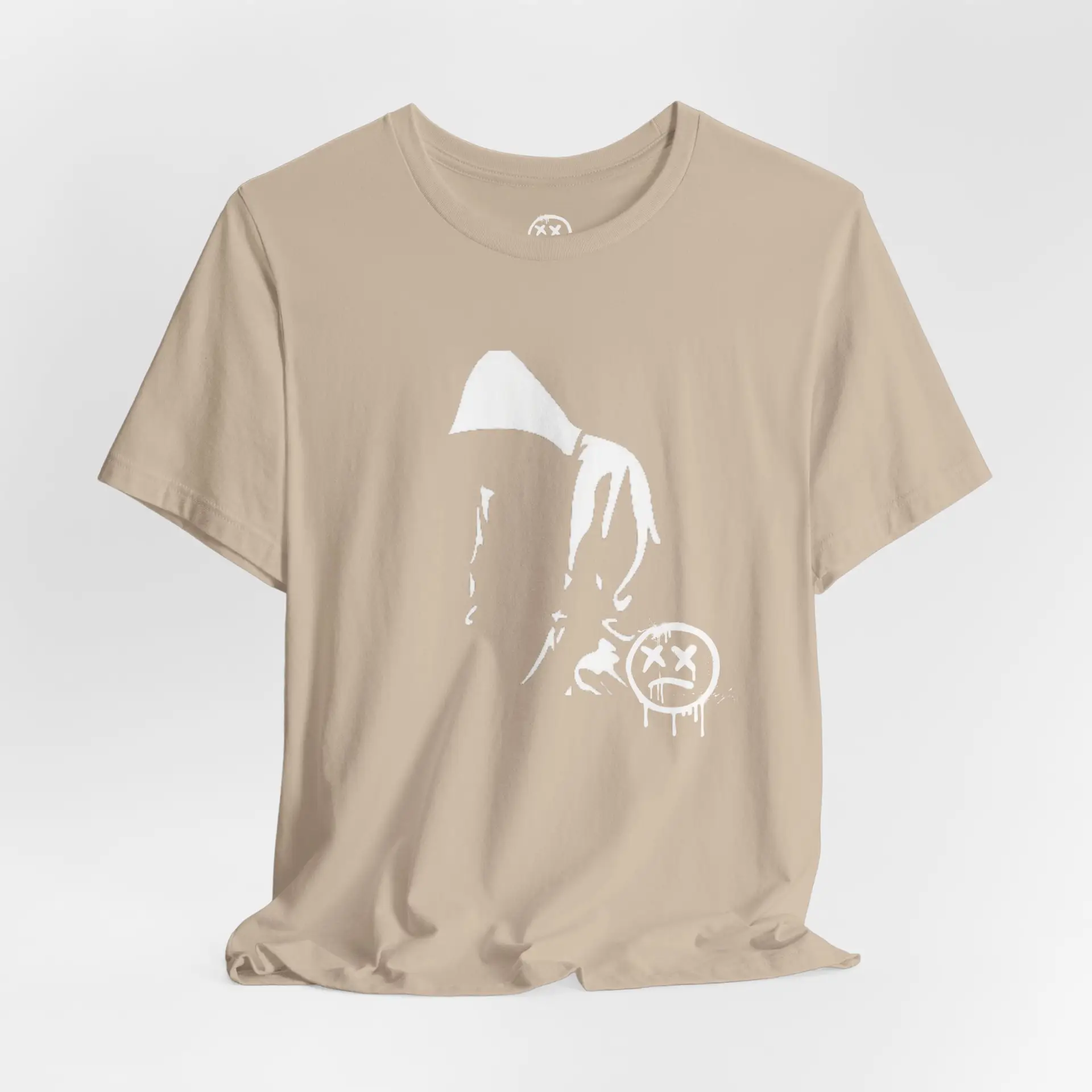 Why I made it: Classic. A hooded figure, face hidden, Happy Face logo as the accent. That’s it. Sometimes the design just makes sense.